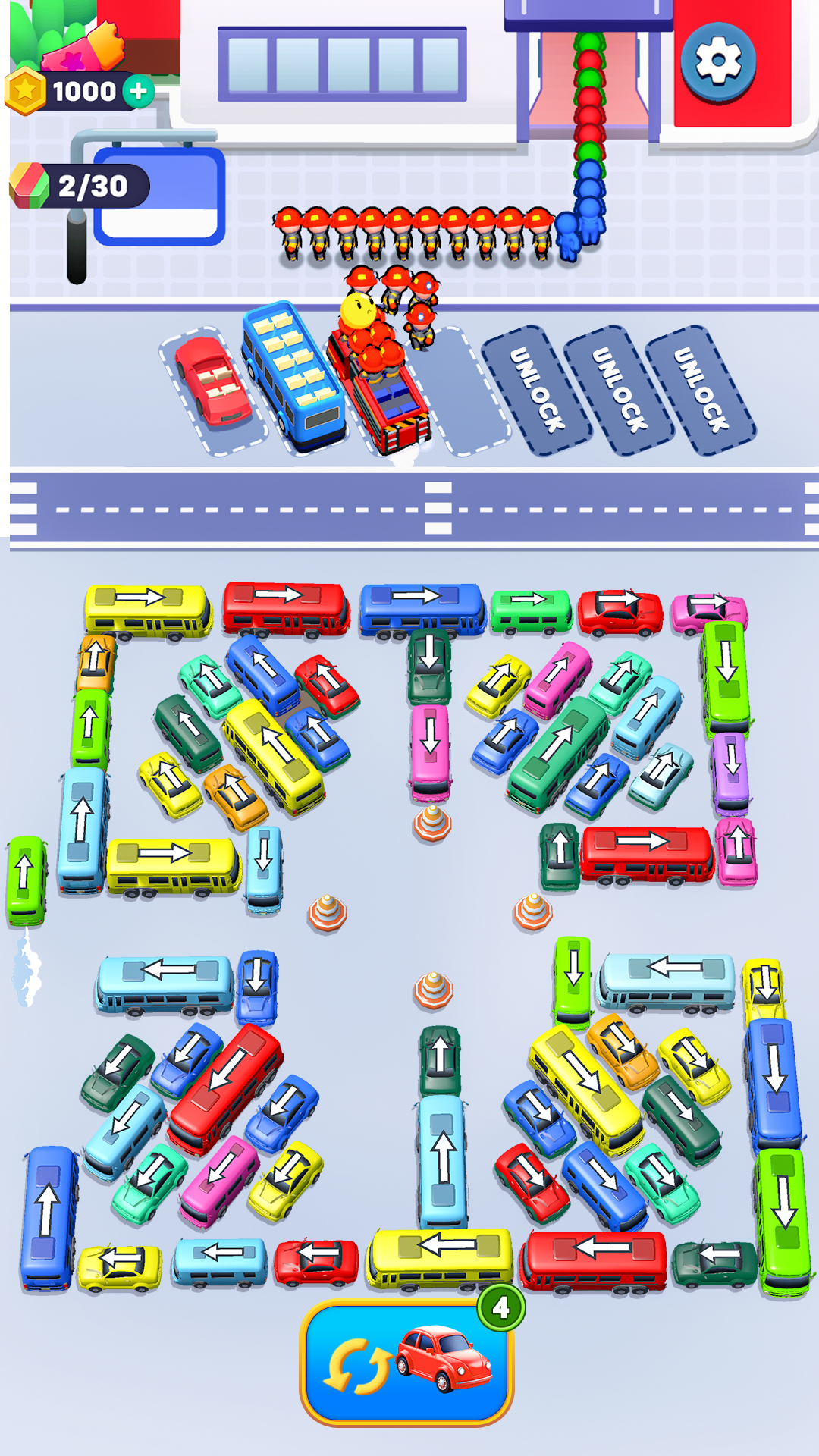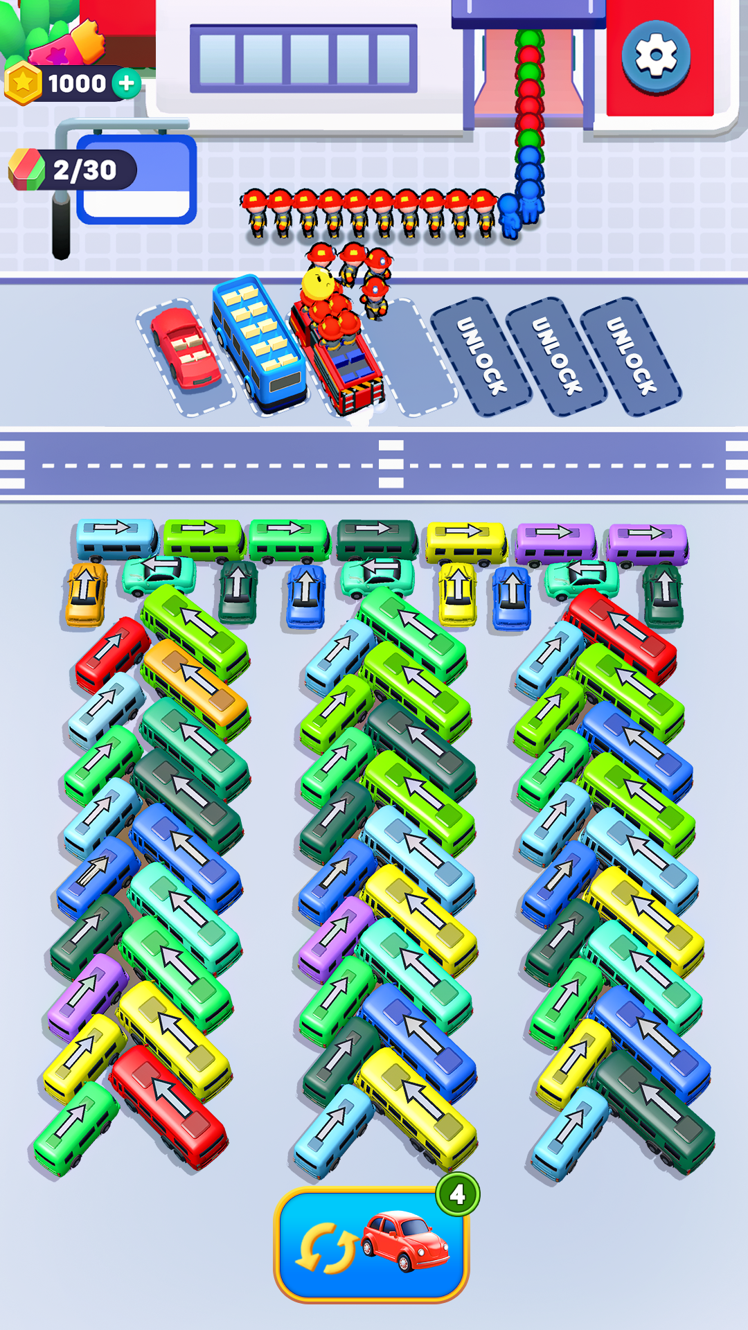 Each level gives you a new challenge. Fix parking jams, match bus colors, and clear the roads step by step. Use your brain and enjoy smooth gameplay.