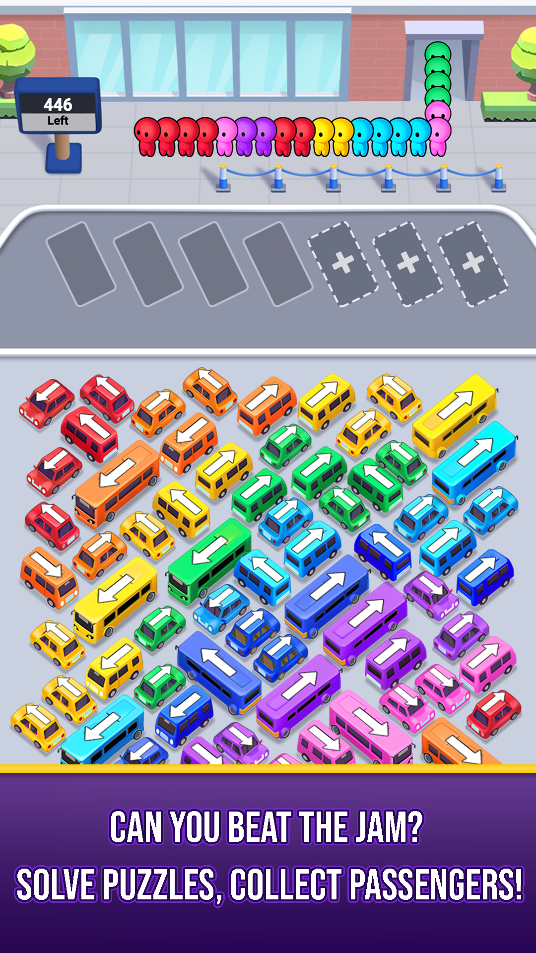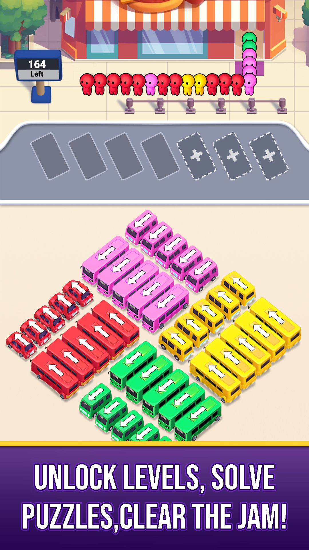 -Addictive bus jam 3D puzzles with increasing difficulty