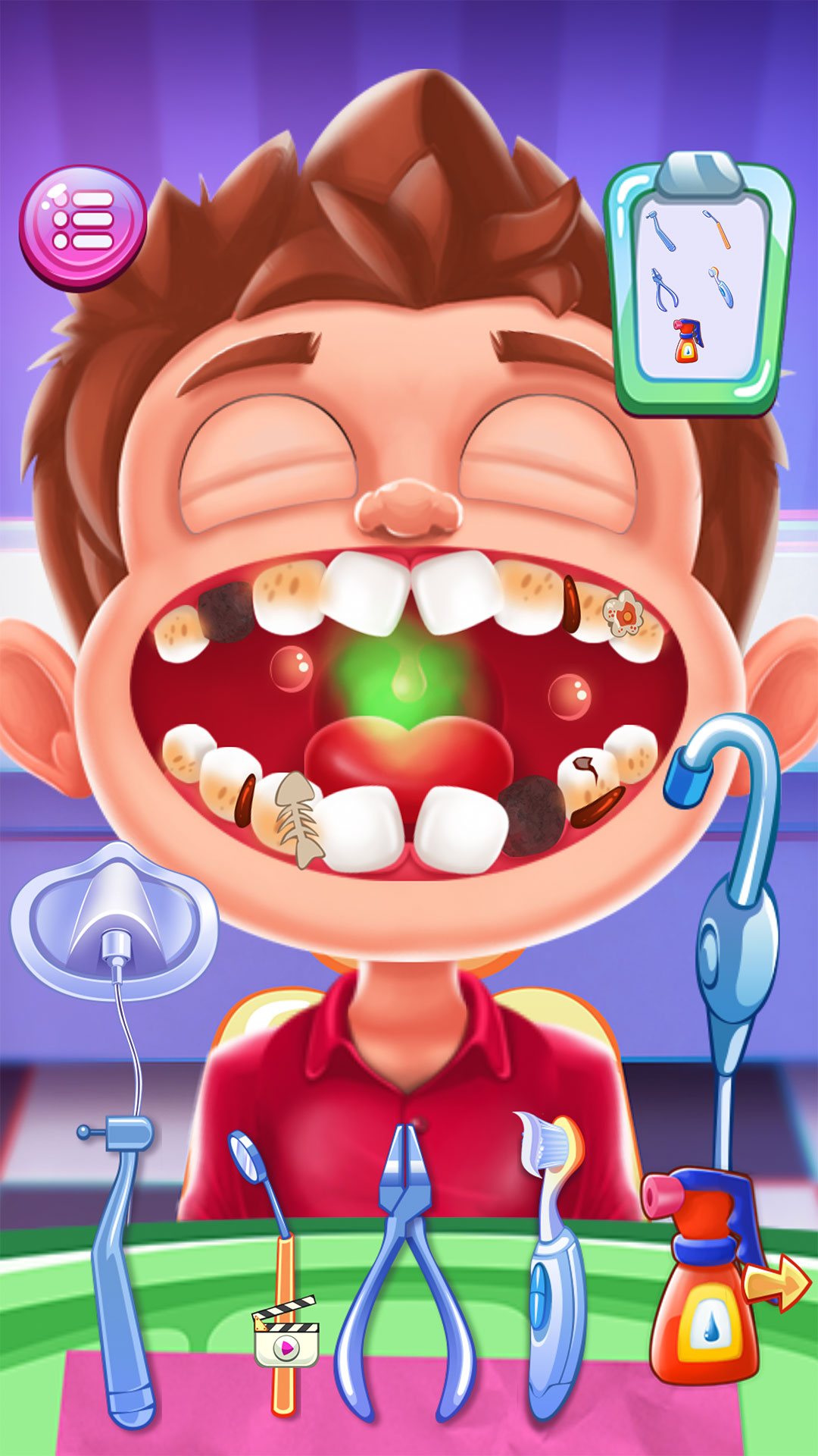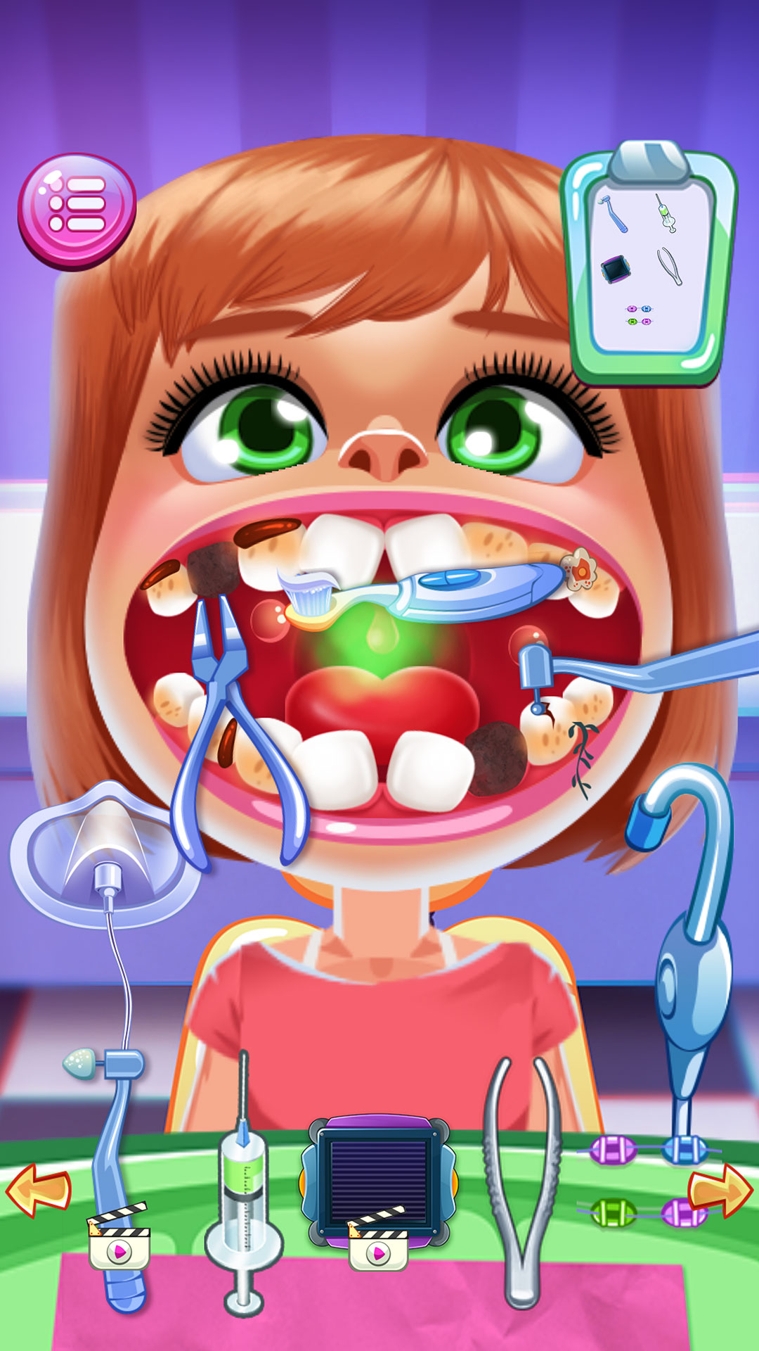 In this interactive dentist game, players step into the role of a Children Dentist Doctor and help young patients keep their teeth clean and healthy. Kids can perform simple and engaging dental procedures such as cleaning teeth, fixing cavities, treating tooth problems, and completing regular dental checkups using easy-to-understand tools.