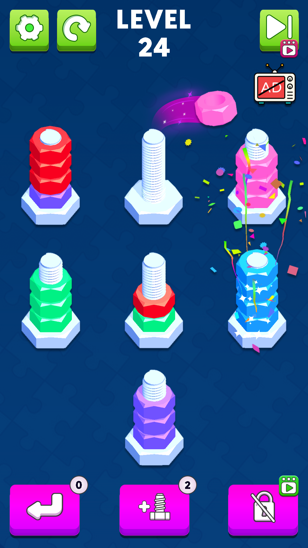 Fans of bolt sorting and nut 3D games will love the vibrant design and satisfying gameplay of this nuts boltssort masterpiece. It’s the perfect blend of fun and challenge—easy to pick up, but hard to master. Play the popular nuts game that has players everywhere hooked on the satisfaction of every successful nut and bolt sorting puzzle.