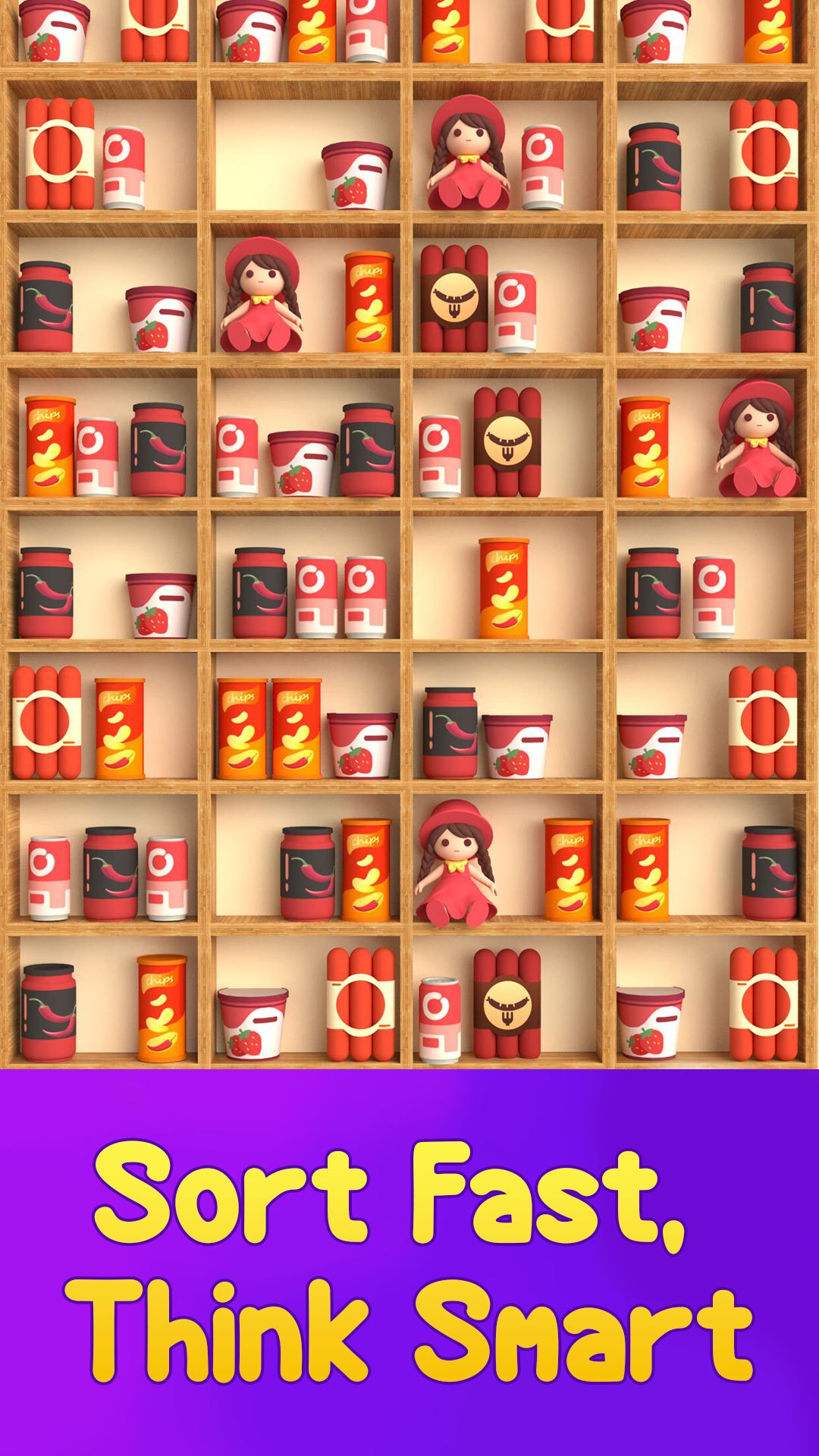 Featuring relaxing gameplay with no ticking clock, Goods Master is one of the best untimed sorting games for pure stress-free fun. Perfect for fans of sorting games for adults and kids, this game blends brain-boosting puzzle gameplay with the calm satisfaction of calming organizing goods 3D cupboards.