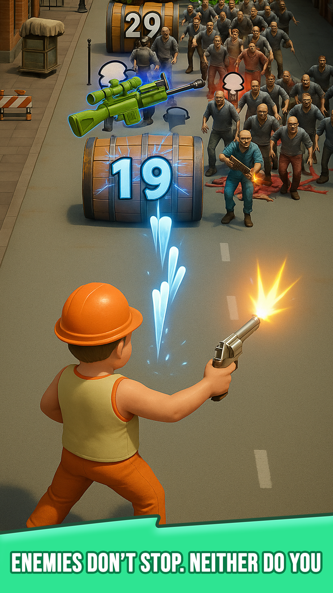 Every run is a tactical mission. Navigate through multiplier gates to strategically boost your firepower, upgrade weapons on the fly, and command your army squad to dominate the battlefield. Choose your loadout wisely and improve your arsenal in this intense upgrade weapons game. Whether it’s a simple rifle or a fully-loaded rocket launcher, every weapon upgrade brings you closer to surviving the zombie trigger moment.