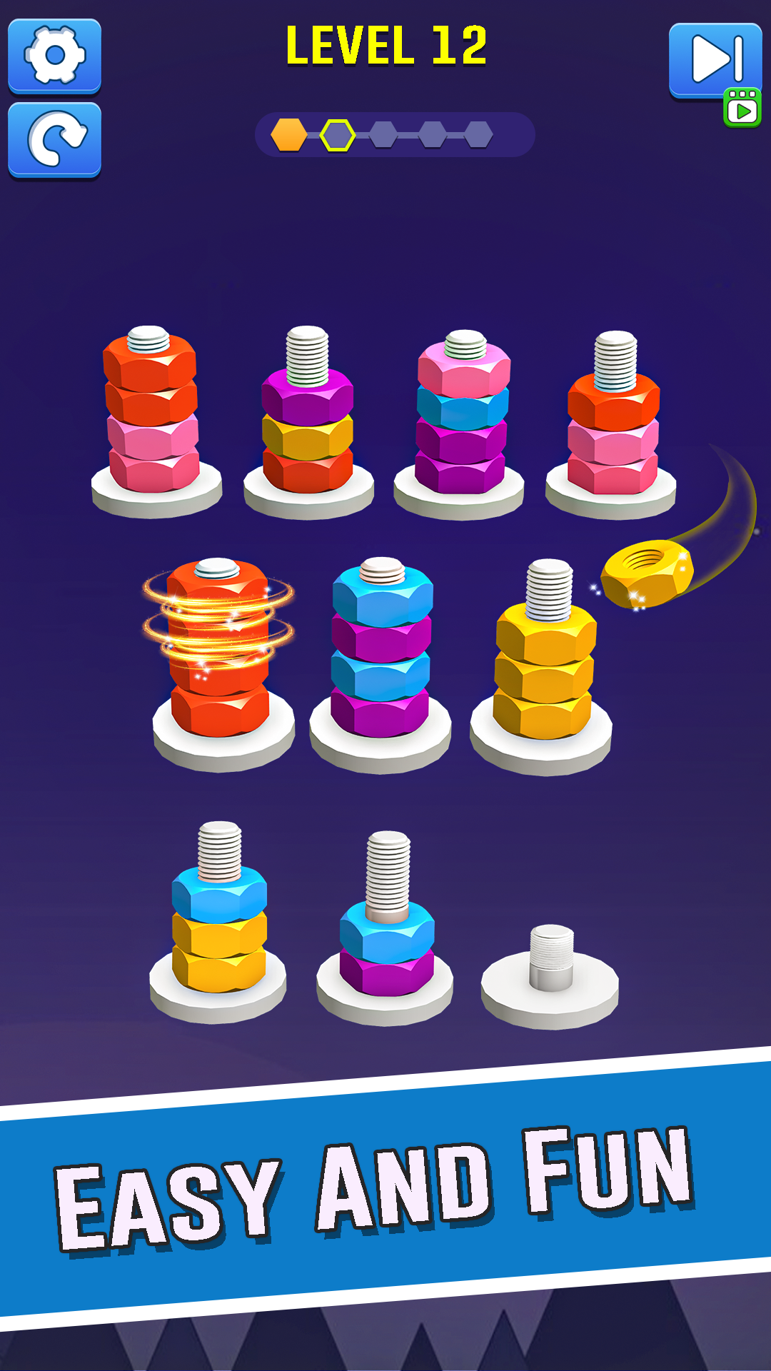 Nuts and Bolts: Nut Sort Game. Dive into the Nuts Bolts Sort challenge. Enjoy addictive Color Nut Norting gameplay with this fun Nuts and Bolts puzzle. Master every Sort Puzzle in Nut Sort now