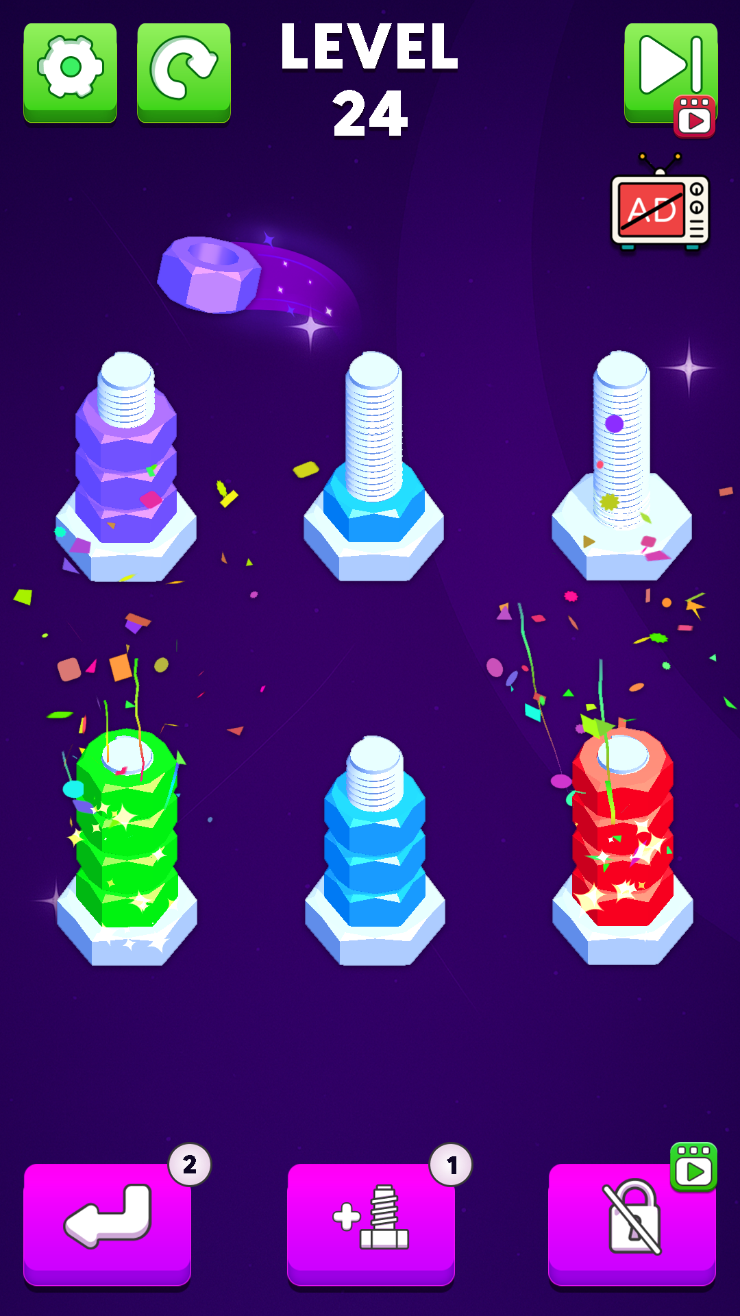 Explore vibrant worlds filled with colorful bolts 3D and intricate nut 3D models that bring your sorting adventures to life. Every level presents a new bolt sort puzzle where you must quickly identify and match color bolts and color nuts with precision and speed. Hone your nuts sort techniques as you navigate through challenging puzzles that demand strategy and quick thinking.