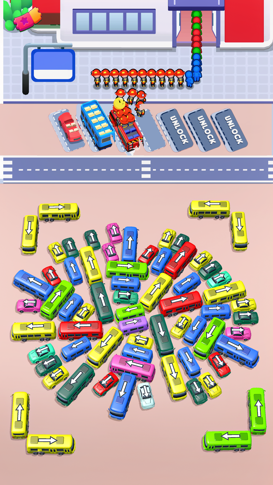 Each level gives you a new challenge. Fix parking jams, match bus colors, and clear the roads step by step. Use your brain and enjoy smooth gameplay.