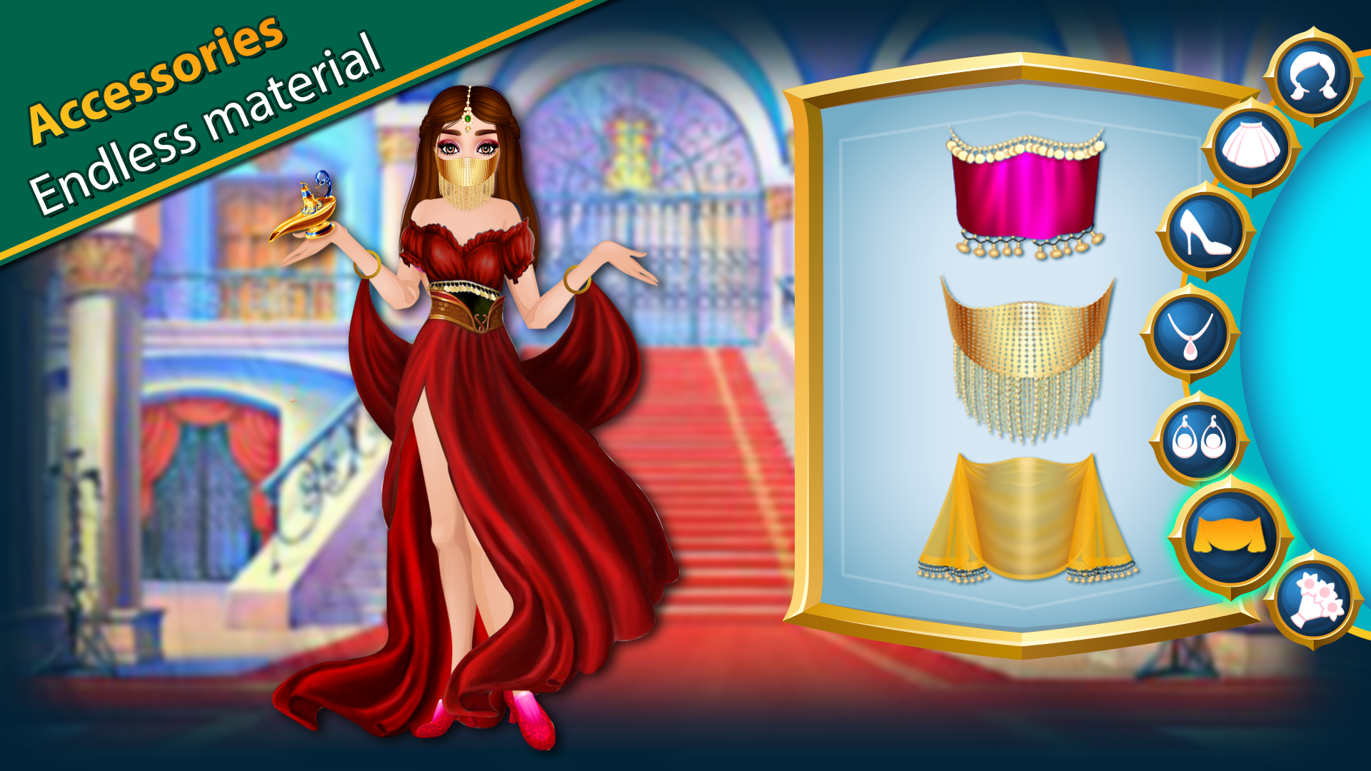 If you love princess dress up games, fairy tales, and Arabic fashion, this game is made just for you. Step into the world of oriental princess style where you can dress up dolls, apply stunning makeup, and create gorgeous looks inspired by Middle East princess culture.