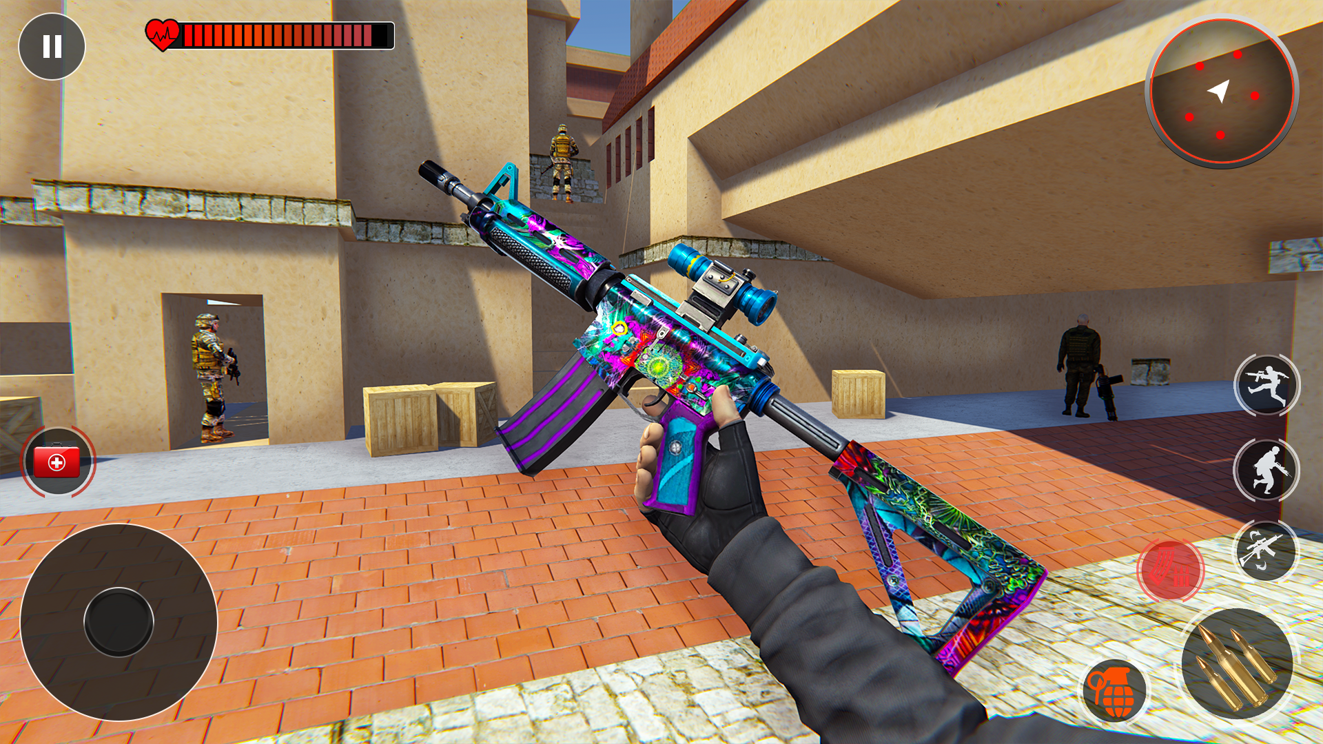 Step into the battlefield as an elite commando shooter. Fight against enemies in high-stakes missions and use advanced weapons to secure victory. Whether you prefer long-range sniper shooting or close-range combat, this game has it all.