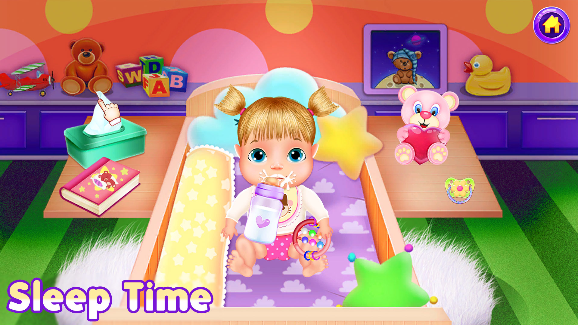From feeding and bathing to dressing up and playtime, Baby Day Care has everything little caregivers need. Enjoy a variety of engaging Baby Care Games where you can feed the baby delicious meals, change diapers, and even put them to sleep with soothing lullabies.