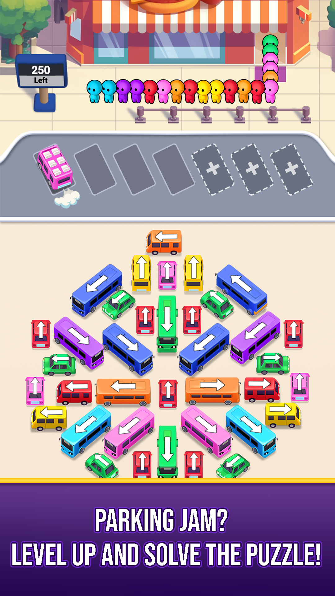 -Addictive bus jam 3D puzzles with increasing difficulty