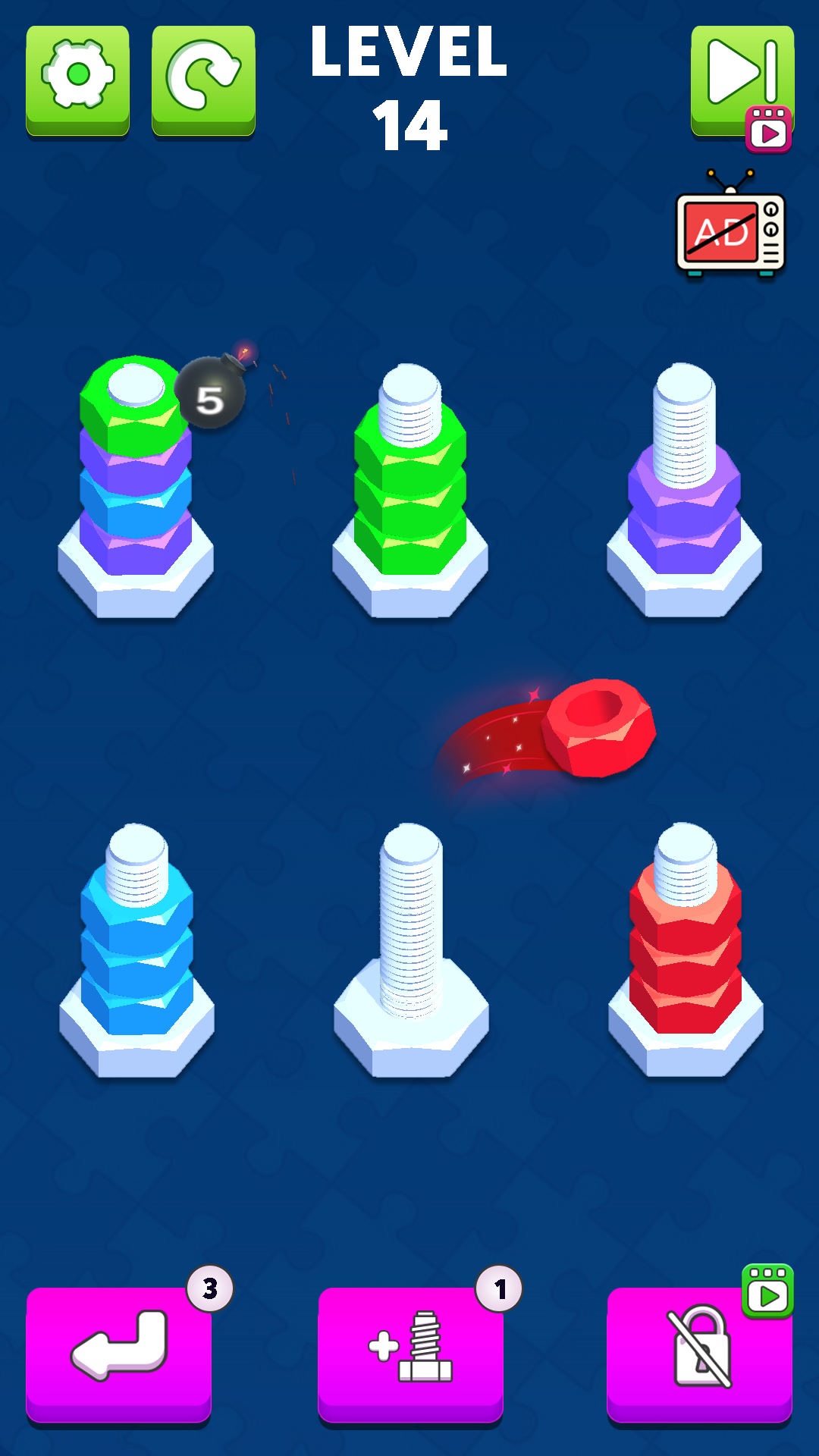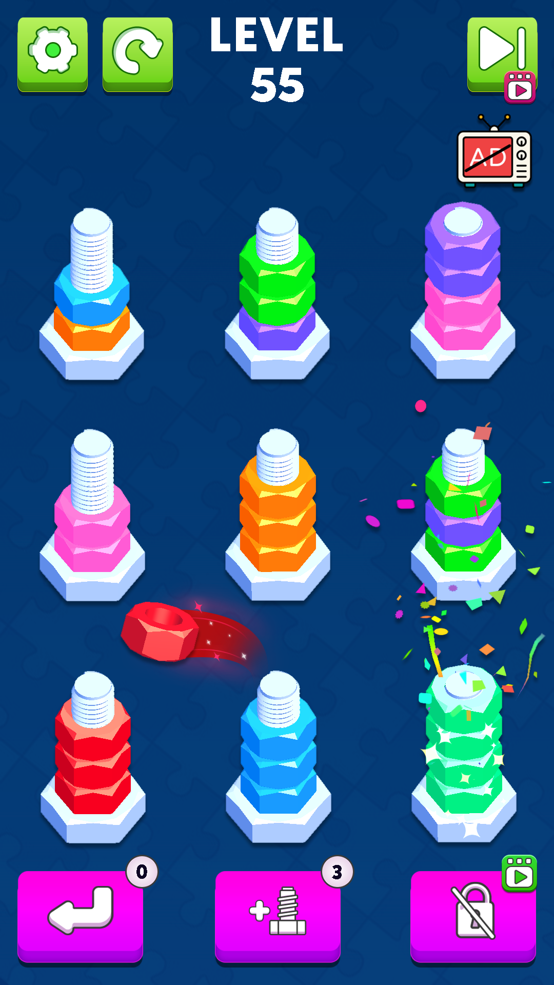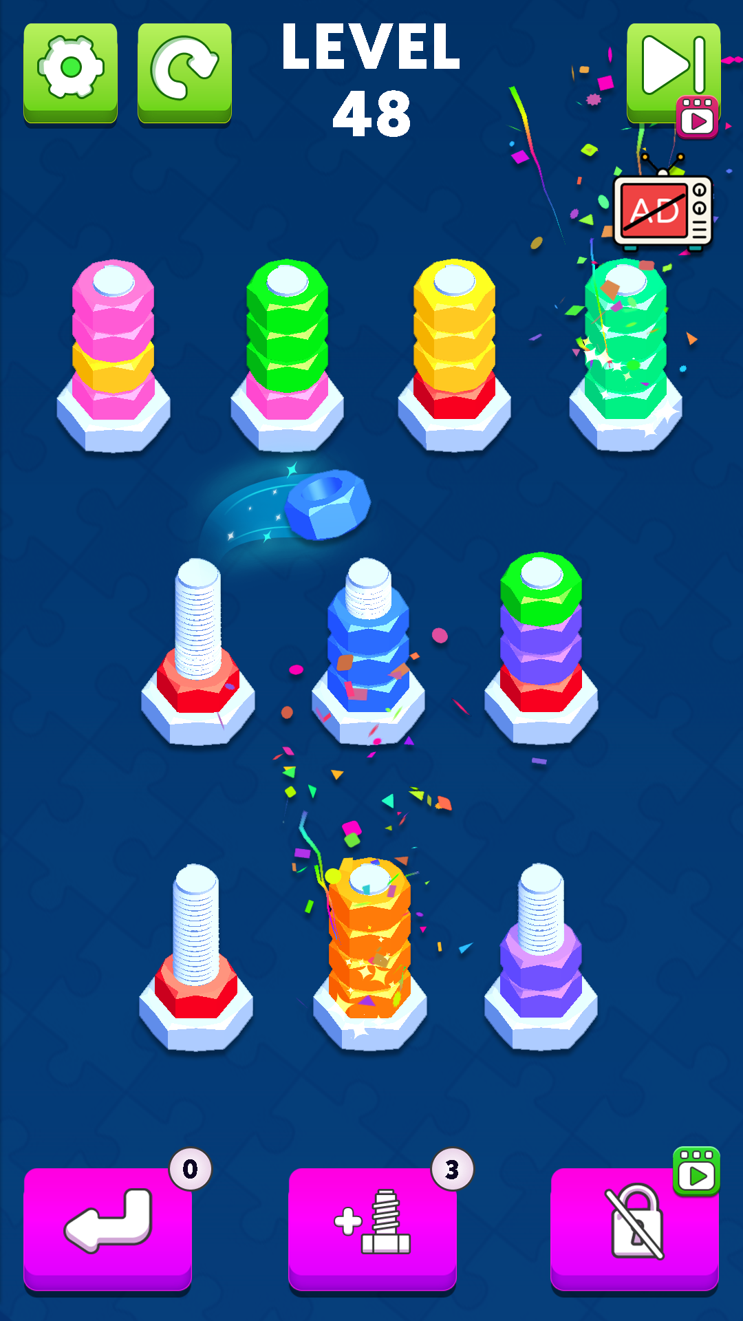 Fans of bolt sorting and nut 3D games will love the vibrant design and satisfying gameplay of this nuts boltssort masterpiece. It’s the perfect blend of fun and challenge—easy to pick up, but hard to master. Play the popular nuts game that has players everywhere hooked on the satisfaction of every successful nut and bolt sorting puzzle.