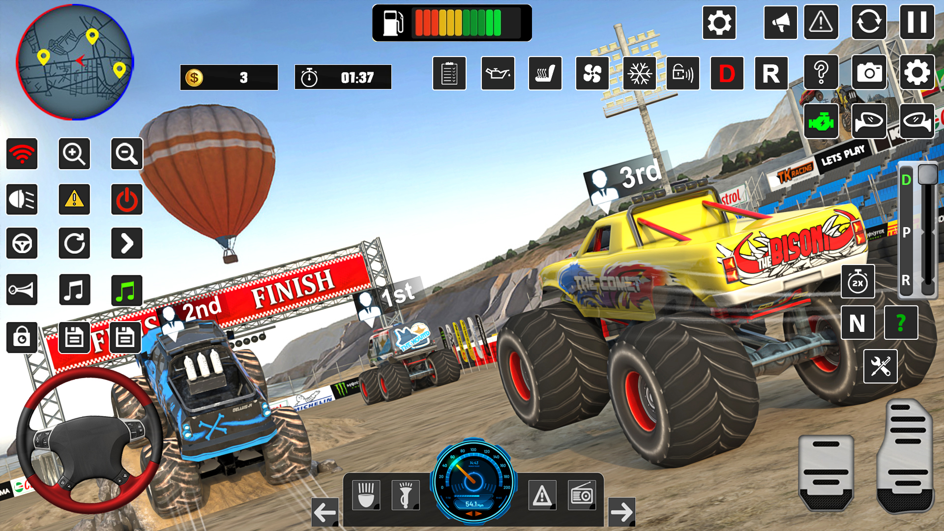 Take part in a wide variety of game modes including Free Driving, competitive Stunts Game events, and career-based missions. Each mode is packed with new challenges that let you showcase your skills across mountains, deserts, snowfields, and more. Whether you're a seasoned pro or just starting your journey into the world of Monster Truck Simulator and Games - Offroad Racing, this game offers something for everyone.
