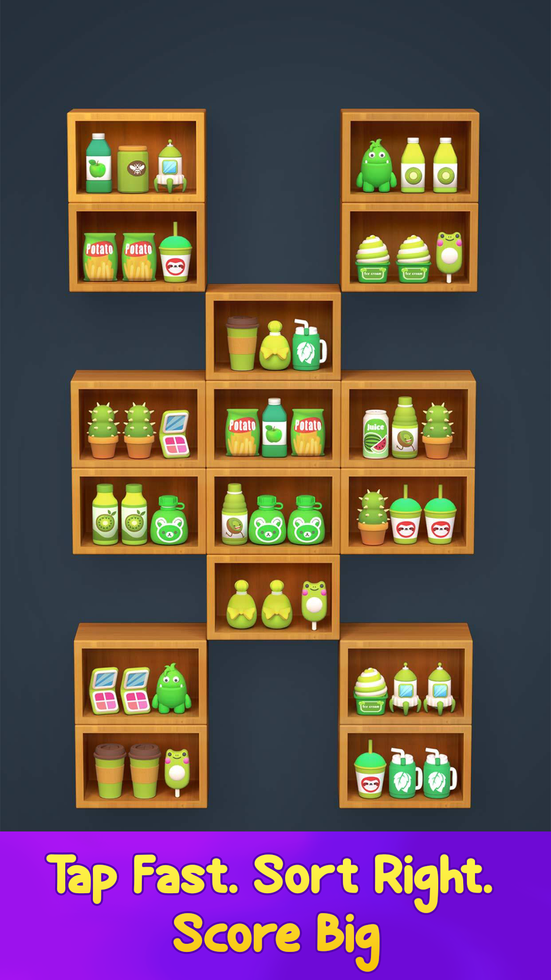 Featuring relaxing gameplay with no ticking clock, Goods Master is one of the best untimed sorting games for pure stress-free fun. Perfect for fans of sorting games for adults and kids, this game blends brain-boosting puzzle gameplay with the calm satisfaction of calming organizing goods 3D cupboards.