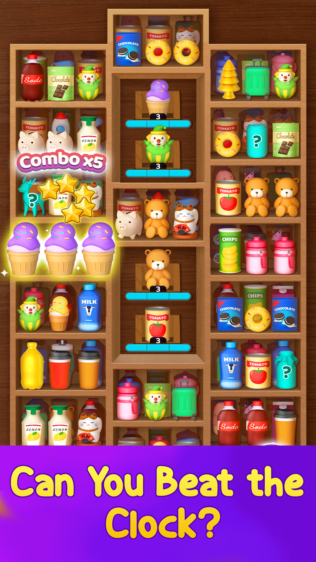 Your mission? Sort and arrange all items in beautifully detailed 3D cupboards, shelves, and drawers. From groceries to gadgets, enjoy the addictive flow of Triple Goods Sort challenges that test your observation and logic skills. This isn’t just about matching—it's about smart placement, color coordination, and creating visual harmony in every level.