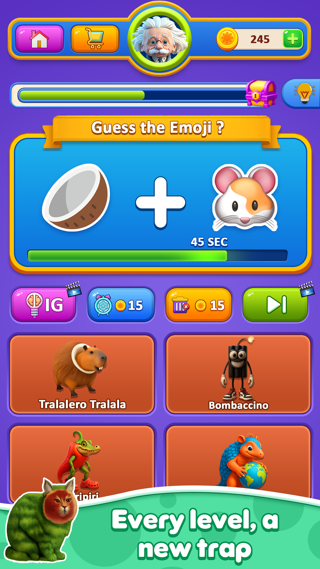�� Unique Meme Brainrot Experience: Recognize iconic phrases like Tralalero Tralala and Bombardiro Crocodilo in this quirky Brainrot Italian Game.