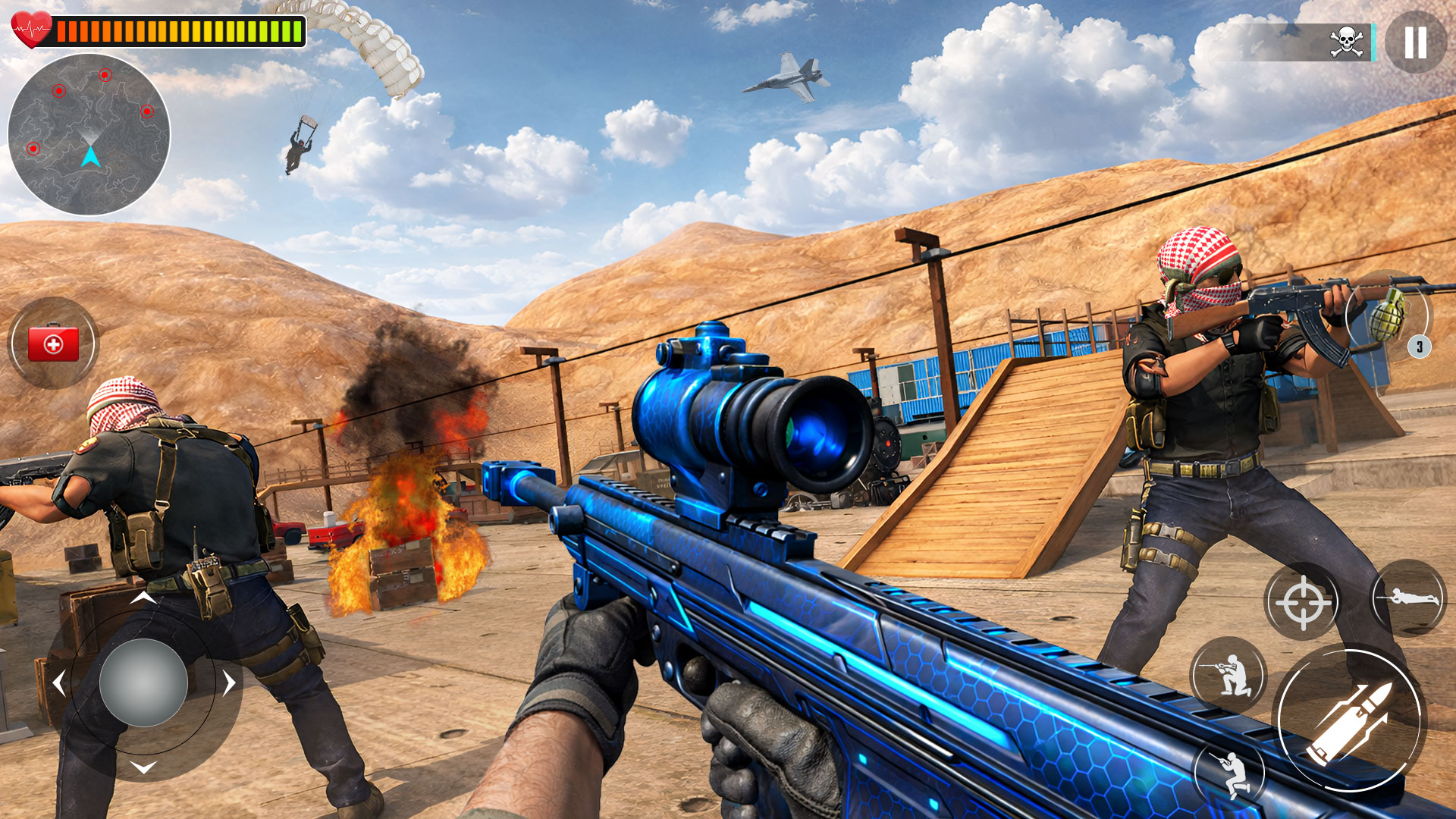 Experience smooth and responsive controls designed for immersive FPS gameplay. Use a wide range of modern weapons including assault rifles, sniper rifles, and tactical guns to complete your missions. Plan your attack carefully, take cover when needed, and strike with precision to dominate the battlefield.