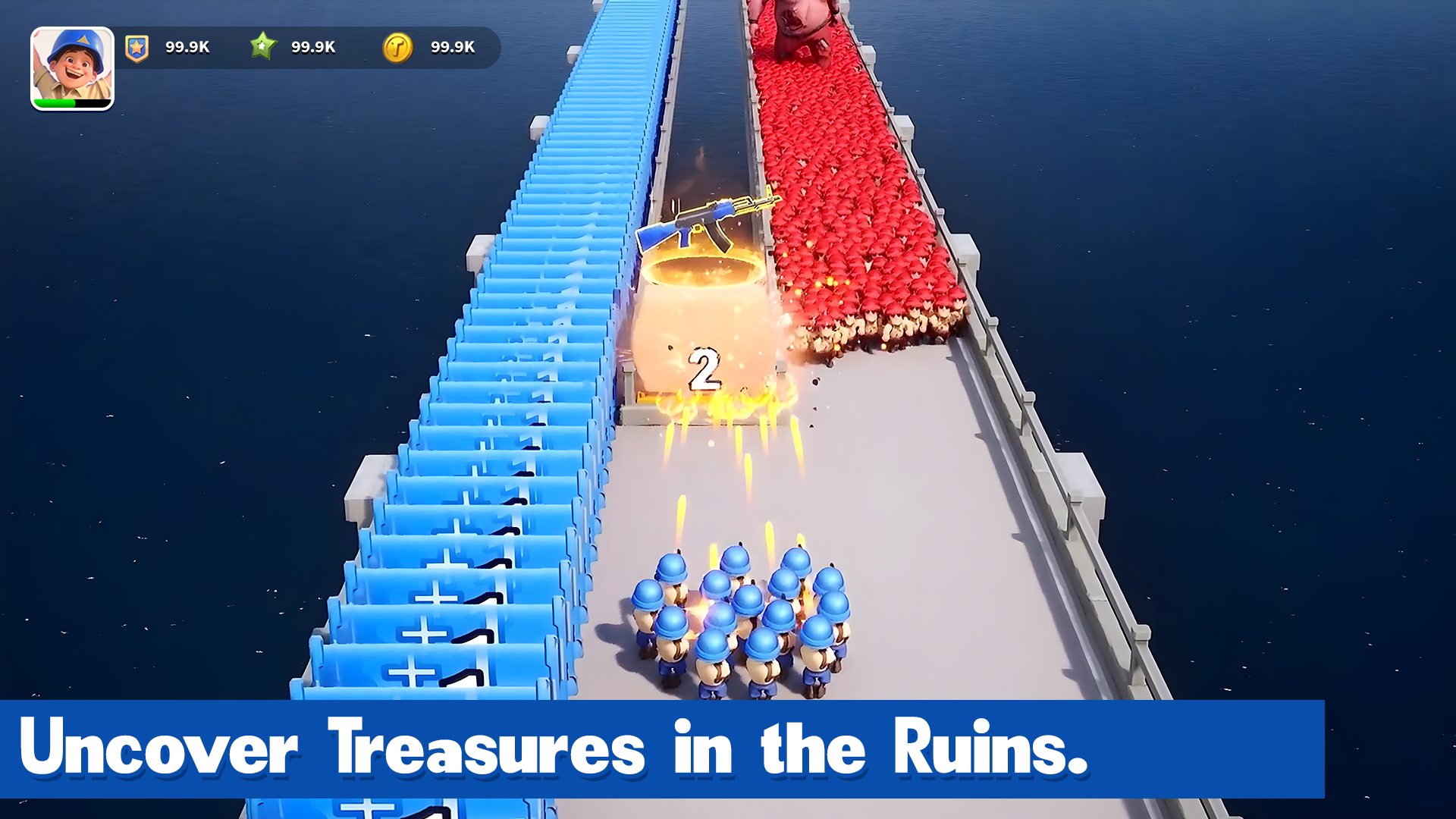 -Epic Battle Action: Command your army squad in a nonstop epic battle against waves of zombies.