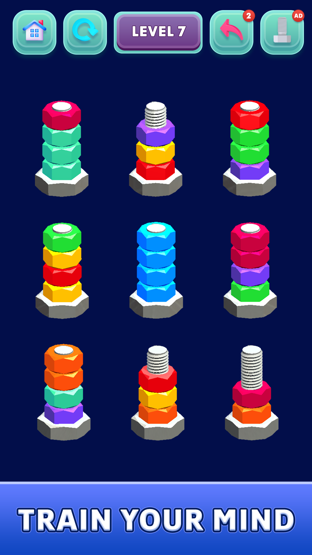 Get ready for the most addictive Nut Sort Game with Nuts and Bolts Jam: Nut Puzzle! If you love color sorting challenges and nuts & bolts puzzles, this game is perfect for you. Test your sorting skills and logic in this engaging nut and bolt sorter designed to challenge your brain with fun and tricky levels.
