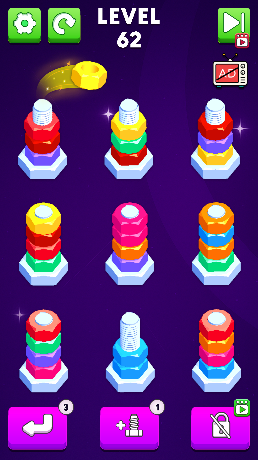 Explore vibrant worlds filled with colorful bolts 3D and intricate nut 3D models that bring your sorting adventures to life. Every level presents a new bolt sort puzzle where you must quickly identify and match color bolts and color nuts with precision and speed. Hone your nuts sort techniques as you navigate through challenging puzzles that demand strategy and quick thinking.
