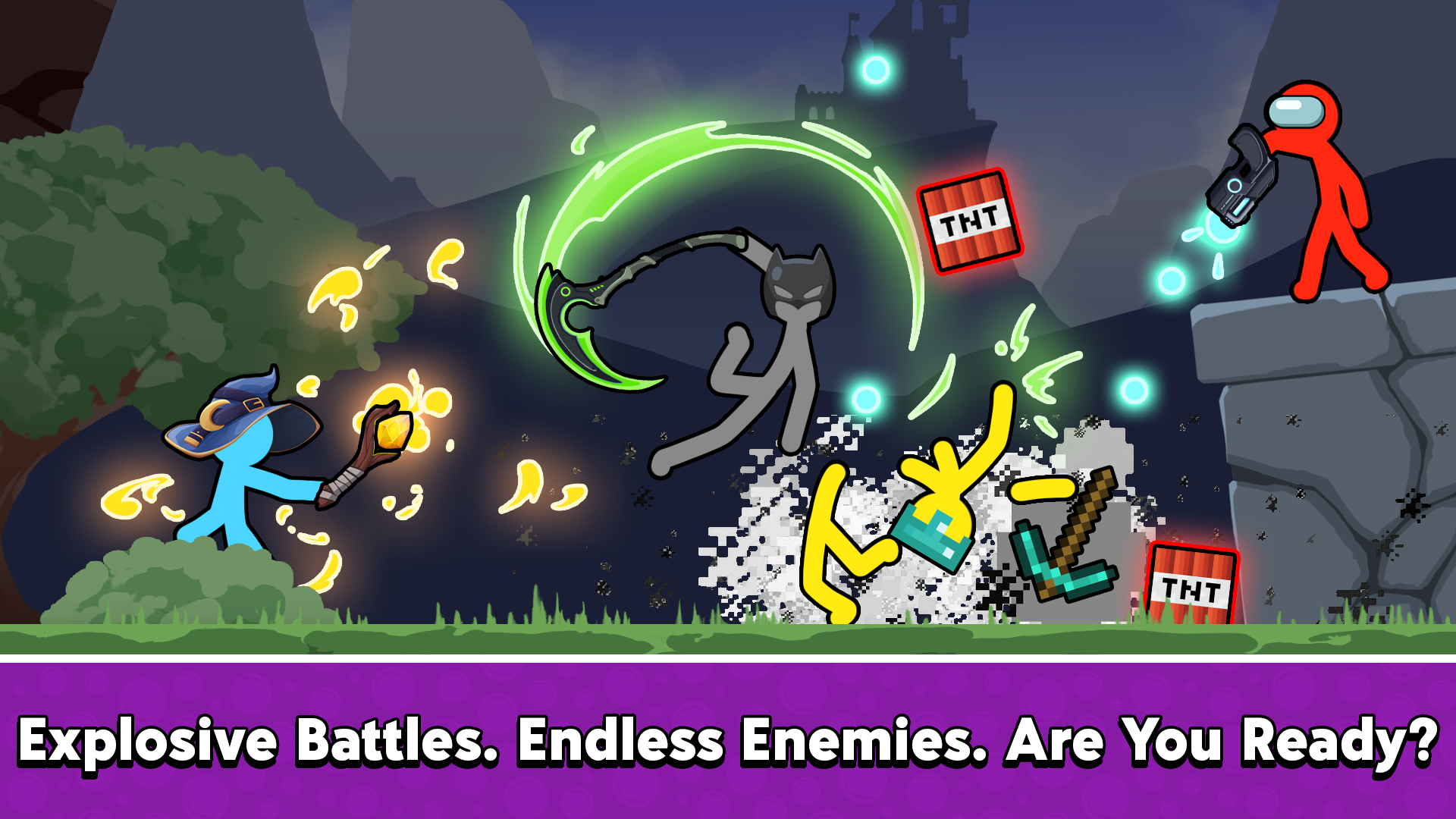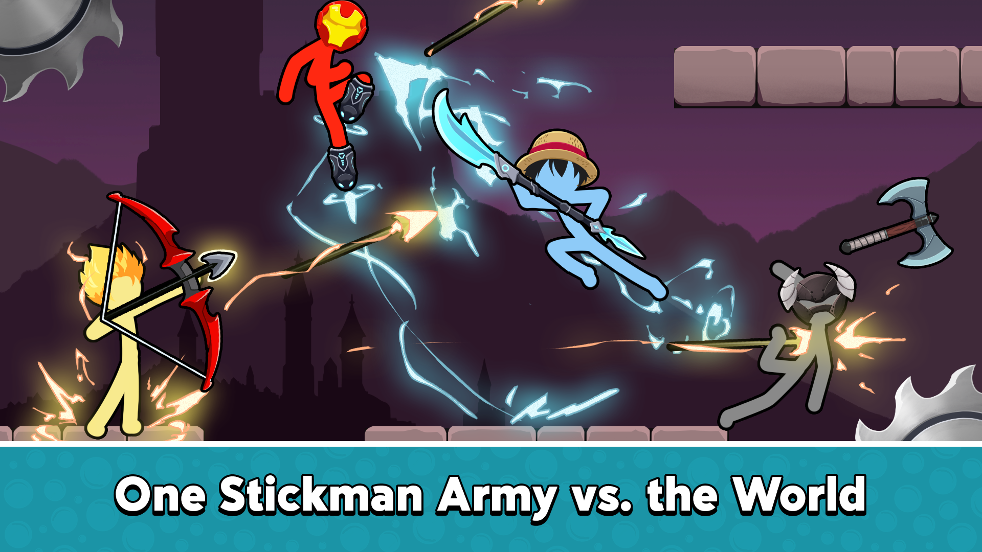 Face off against the Stickman Army, a ruthless force determined to dominate the world. Form alliances in Team Battle mode and join The Defenders in their noble cause to stop the chaos. Or rise with The Resistance to overthrow tyranny and restore balance to the realm of Stickman Wars.