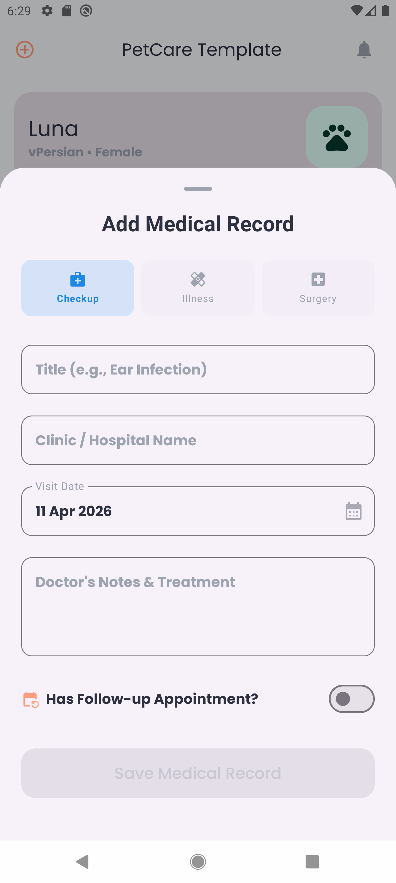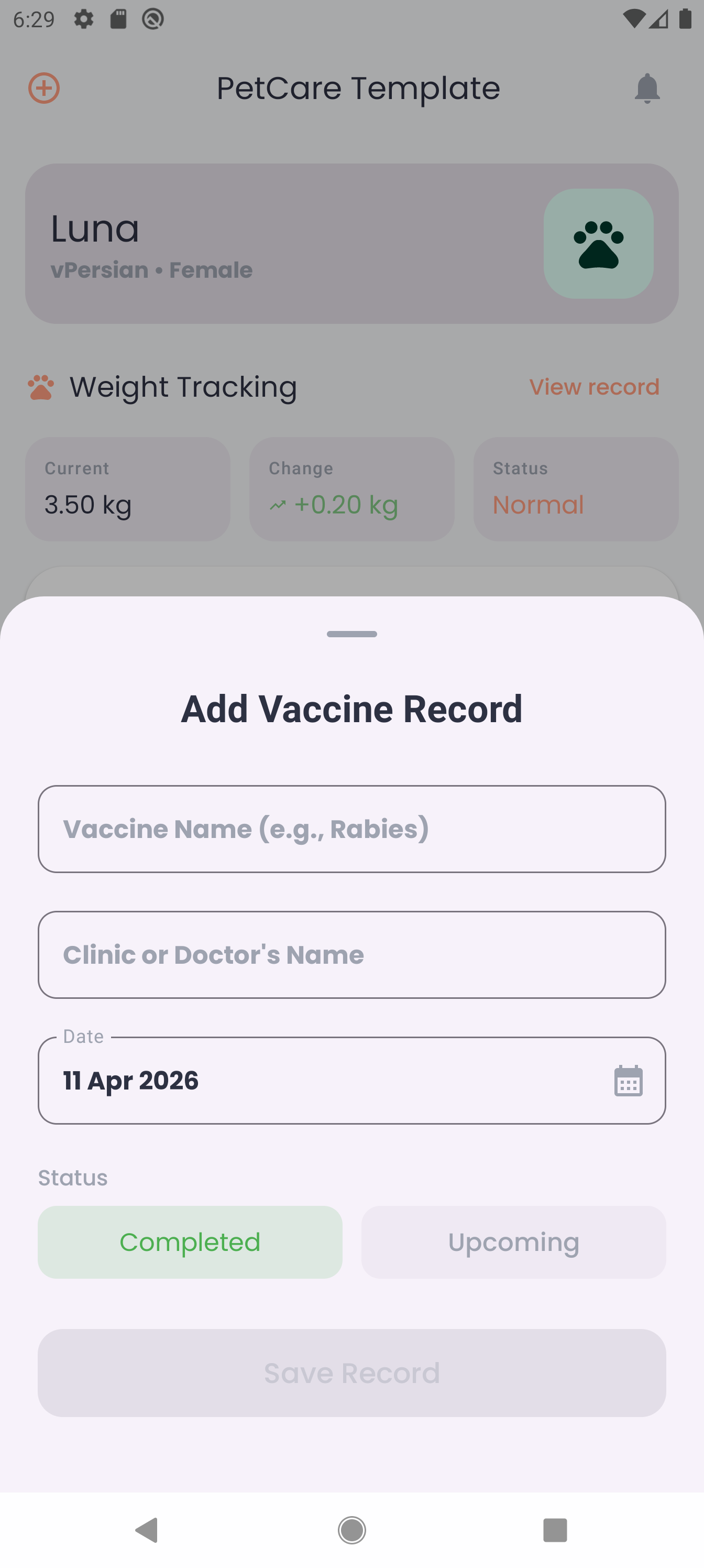 PetCare is a fully functional, premium Android application template built entirely with Kotlin and Jetpack Compose. Designed with Clean Architecture, it provides a seamless experience for pet owners to manage their pets' health records, vaccines, and upcoming appointments.